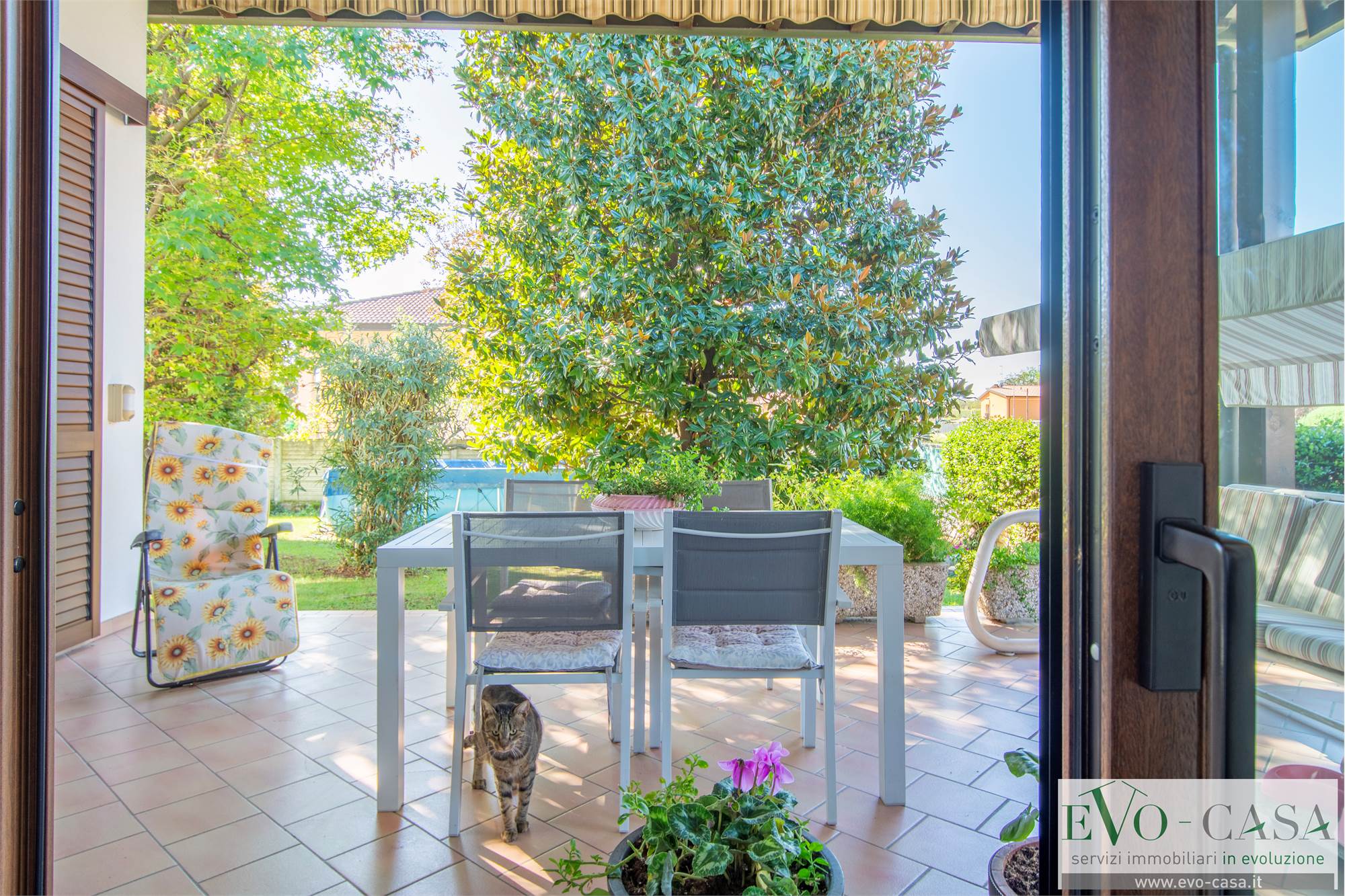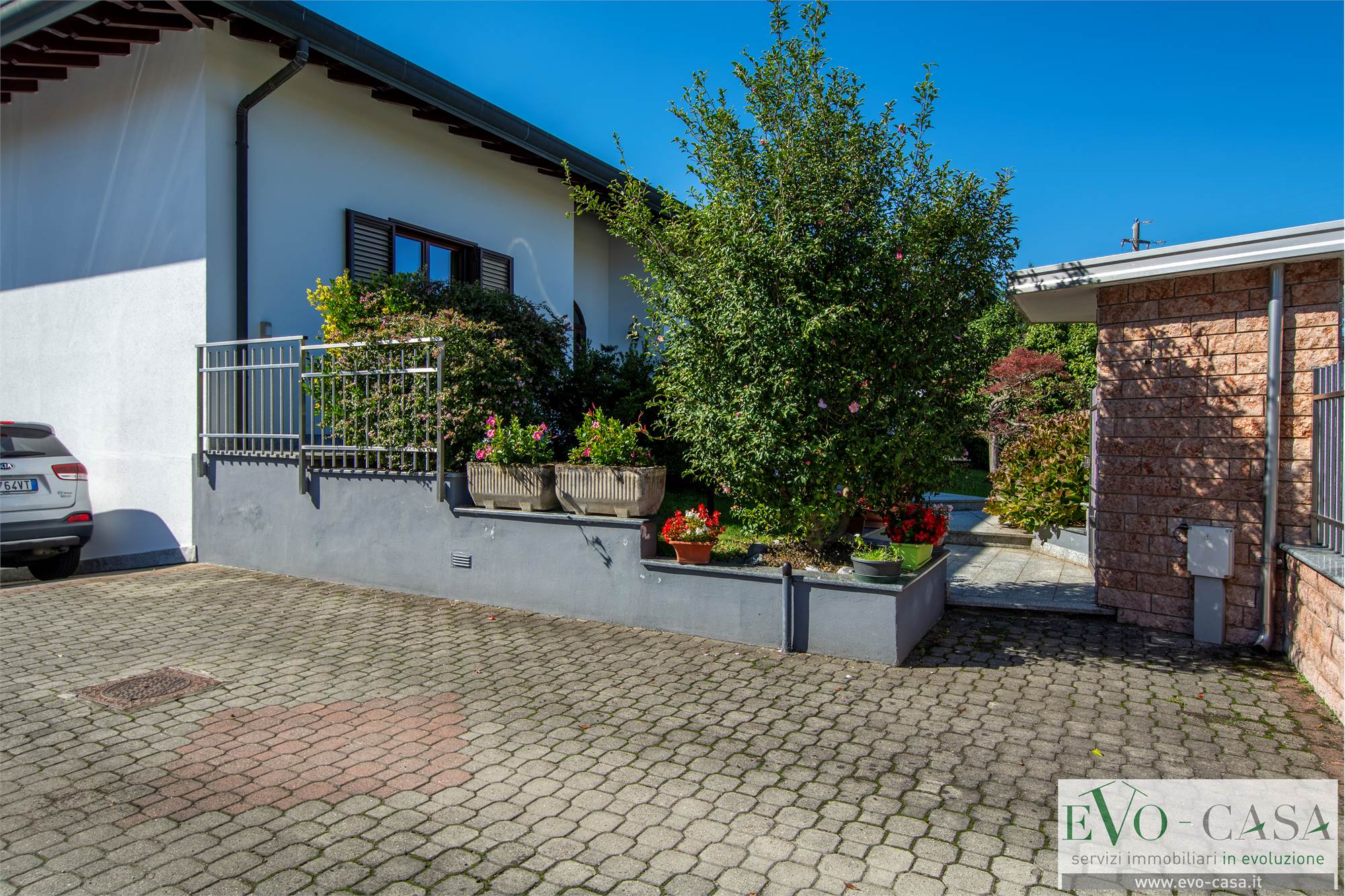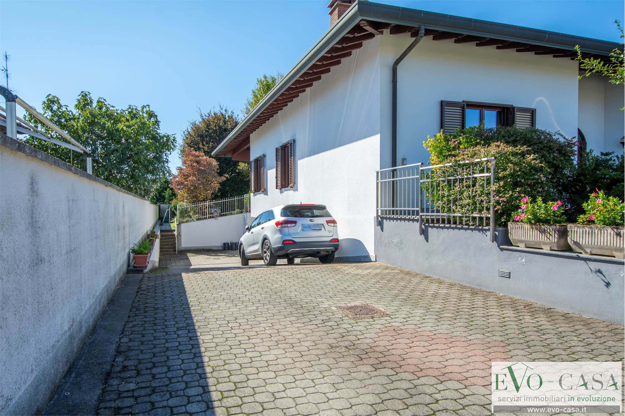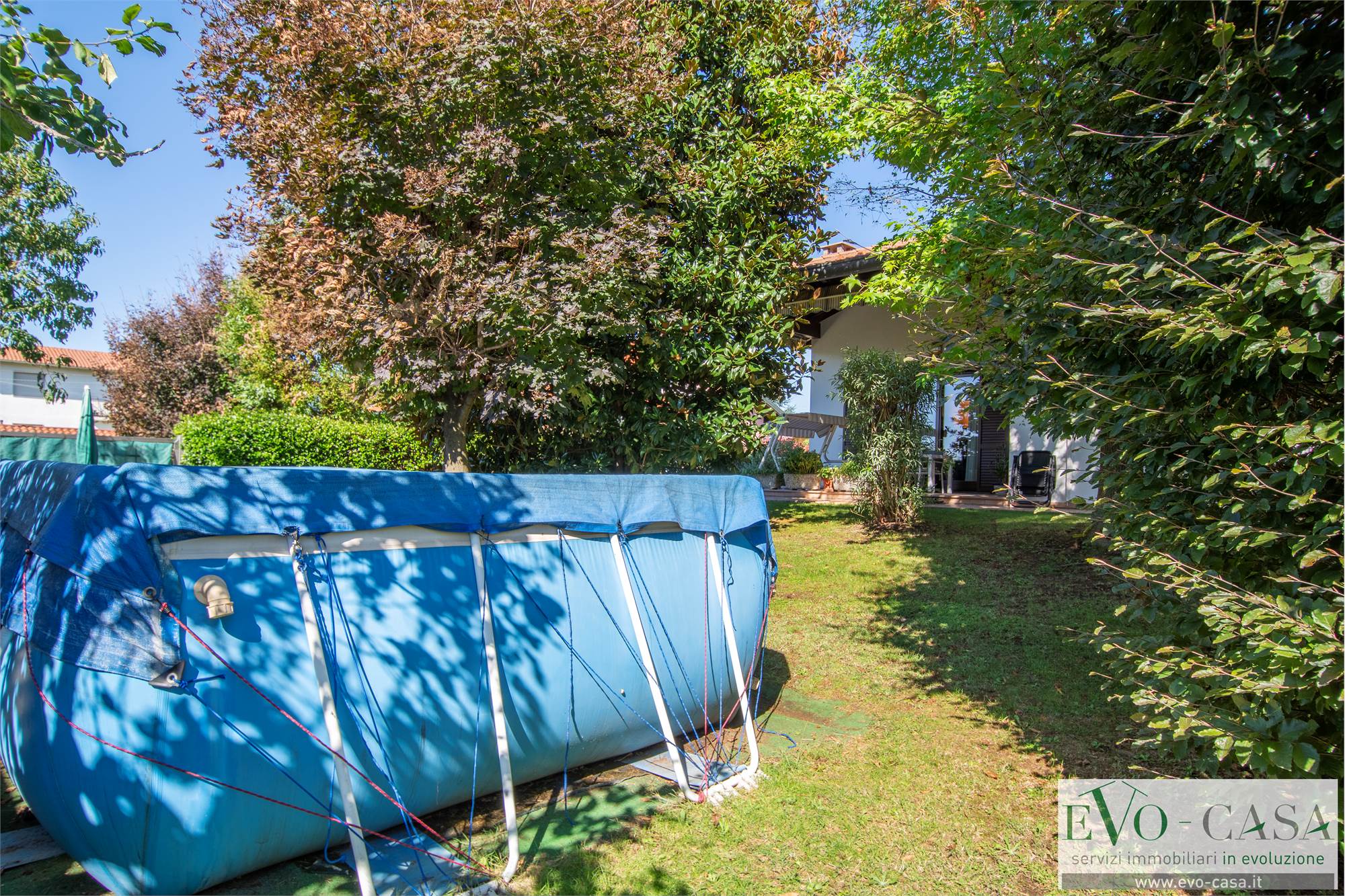 Il giardino si sviluppa per la maggior parte sul retro, dove i proprietari hanno posato una piscina esterna ed è dotato di impianto di irrigazione automatico a 4 vie.