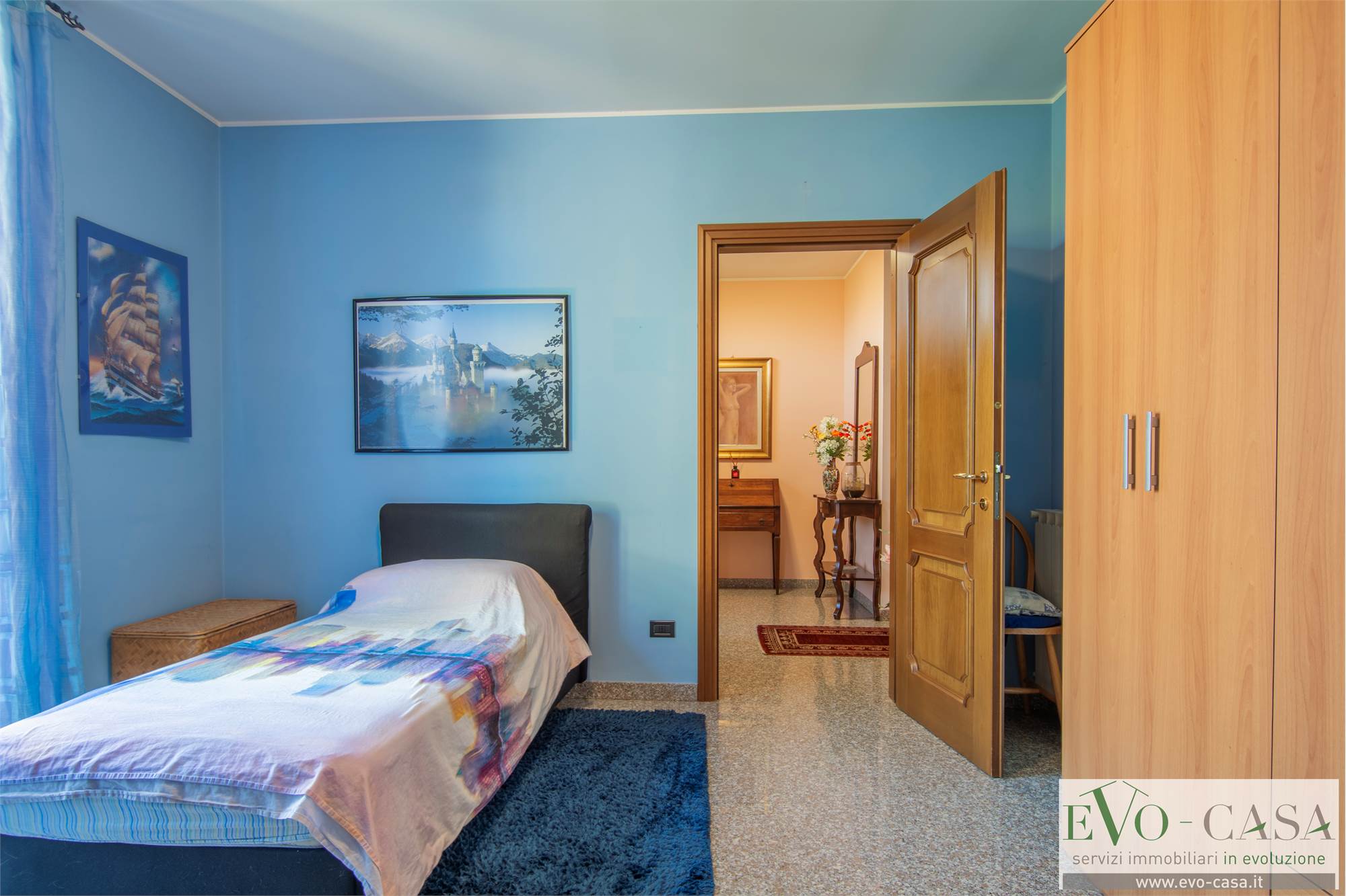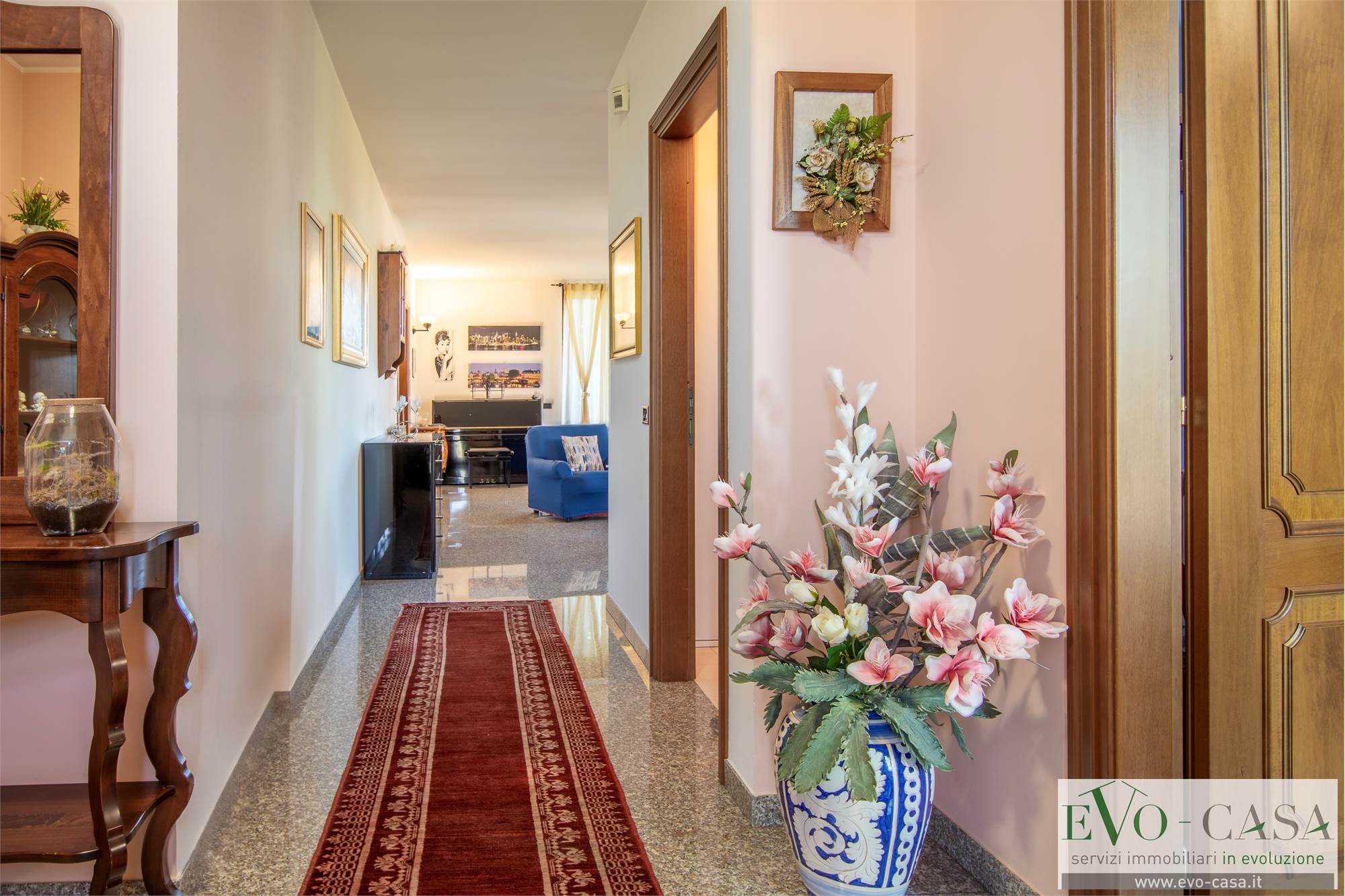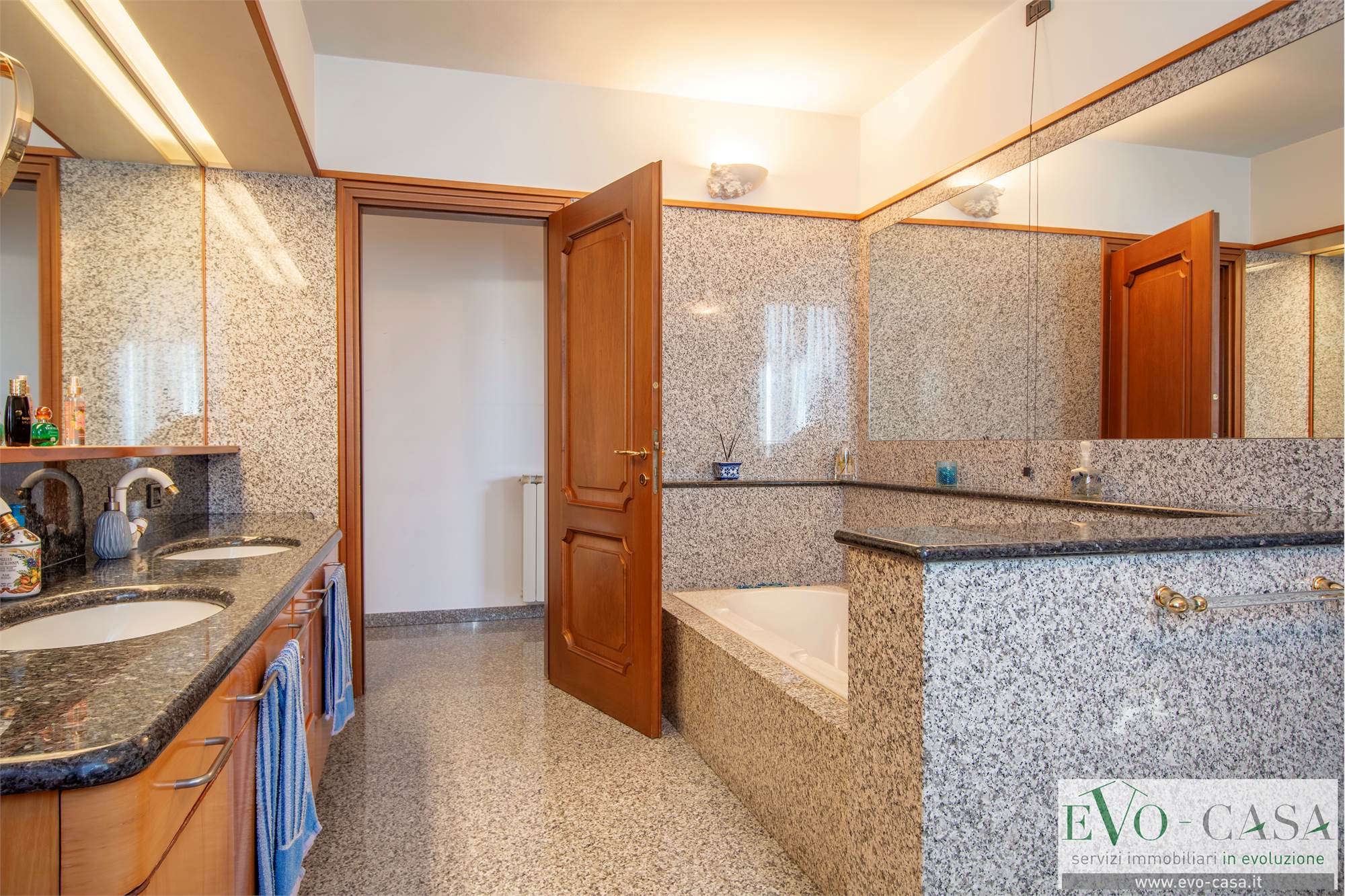 La pavimentazione è in granito per la zona giorno e in parquet per le camere. I serramenti sono stati sostituiti nel 2023 installandoli in legno a triplo vetro con persiane in alluminio. Nello stesso anno è stata ridipinta anche la facciata.