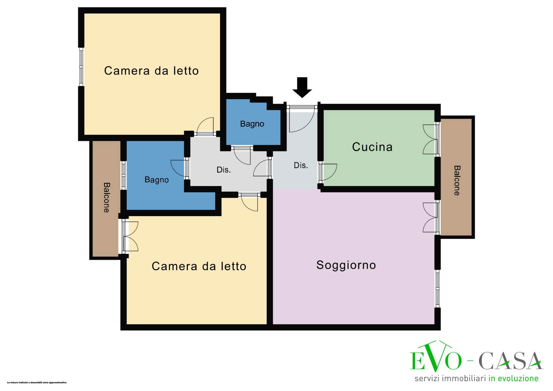 Nella prima soggiorno e cucina sono costituiti da due locali divisi; la seconda organizza le due stanze da letto, entrambe di comoda metratura, attorno al corridoio.