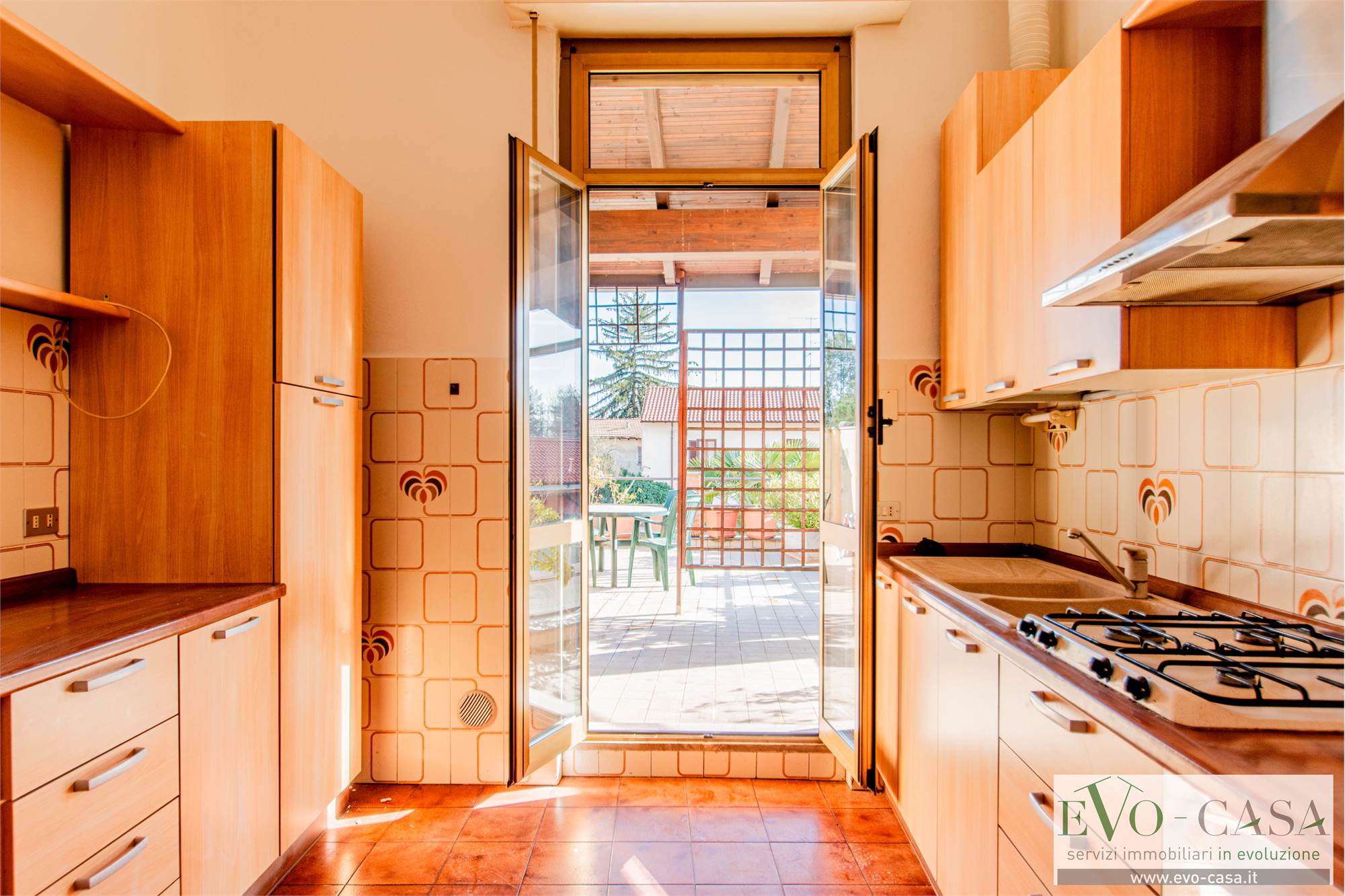 Salendo al piano superiore entriamo nel soggiorno, ambiente arioso e luminoso grazie a una tripla esposizione che ne valorizza ogni angolo. Dal living si accede alla cucina semi-abitabile, progettata per dialogare con l’esterno. È proprio qui che troviamo il vero fiore all'occhiello dell'immobile: un ampio terrazzo che si propone come un’estensione naturale della zona giorno, perfetto per accogliere momenti di convivialità tra amici e parenti.