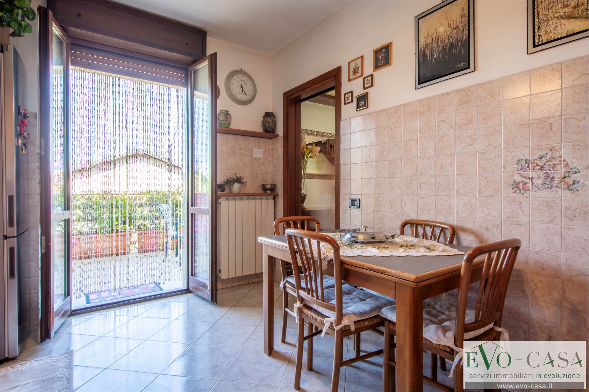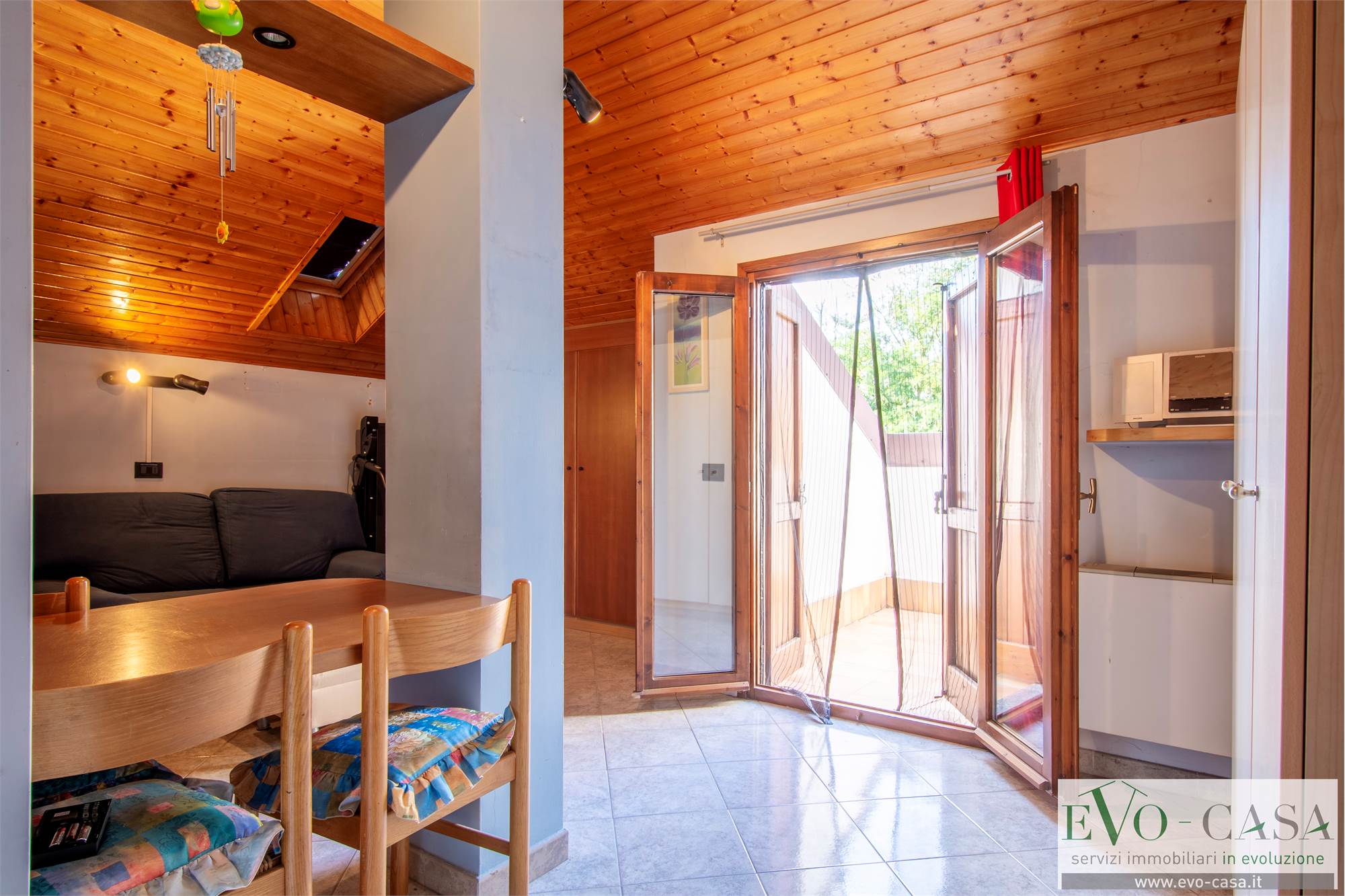 Entrando si accede al soggiorno, ampio e luminoso, collegato al terrazzo spazioso e facilmente sfruttabile con un tavolo per mangiare in compagnia.