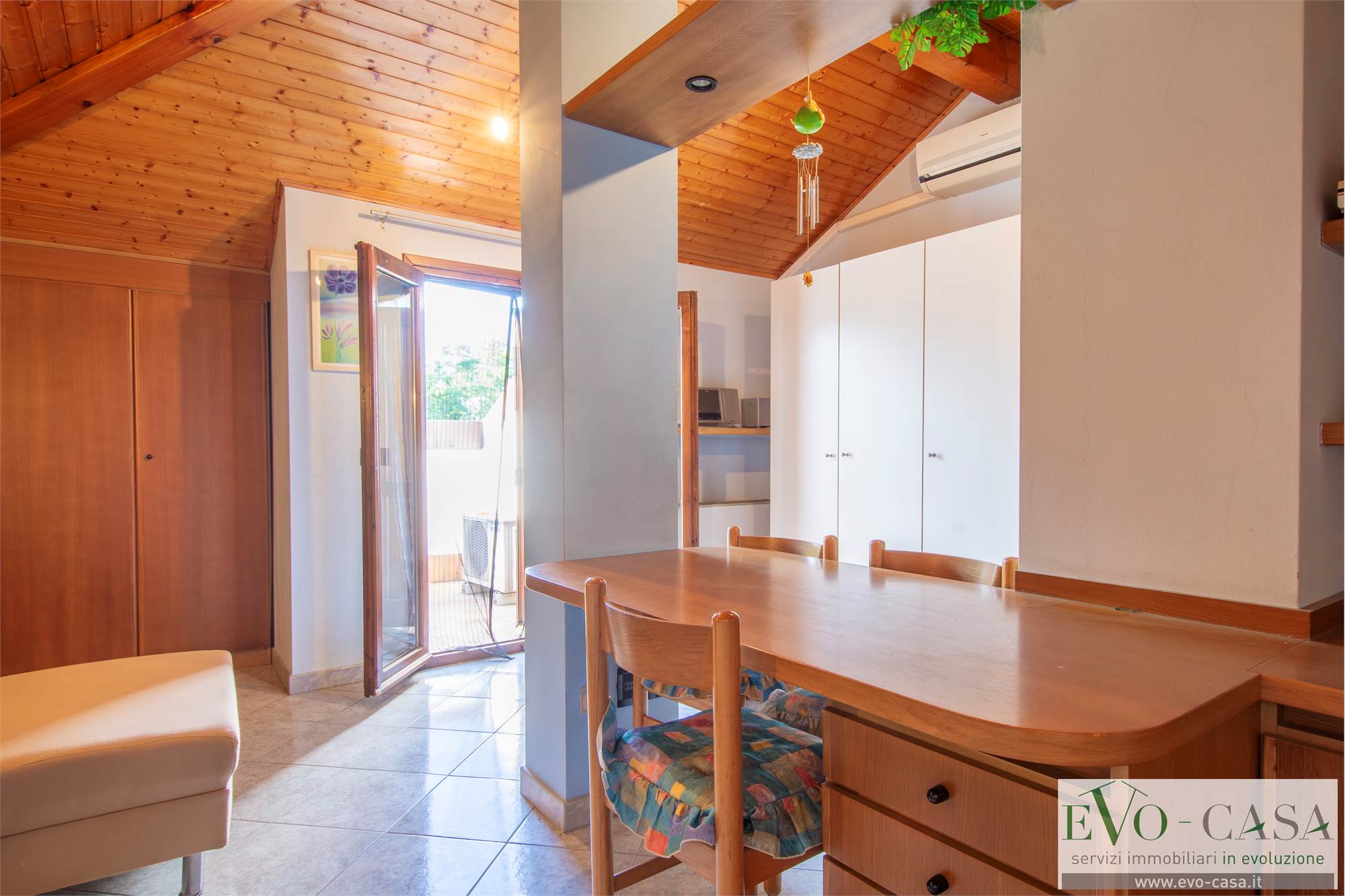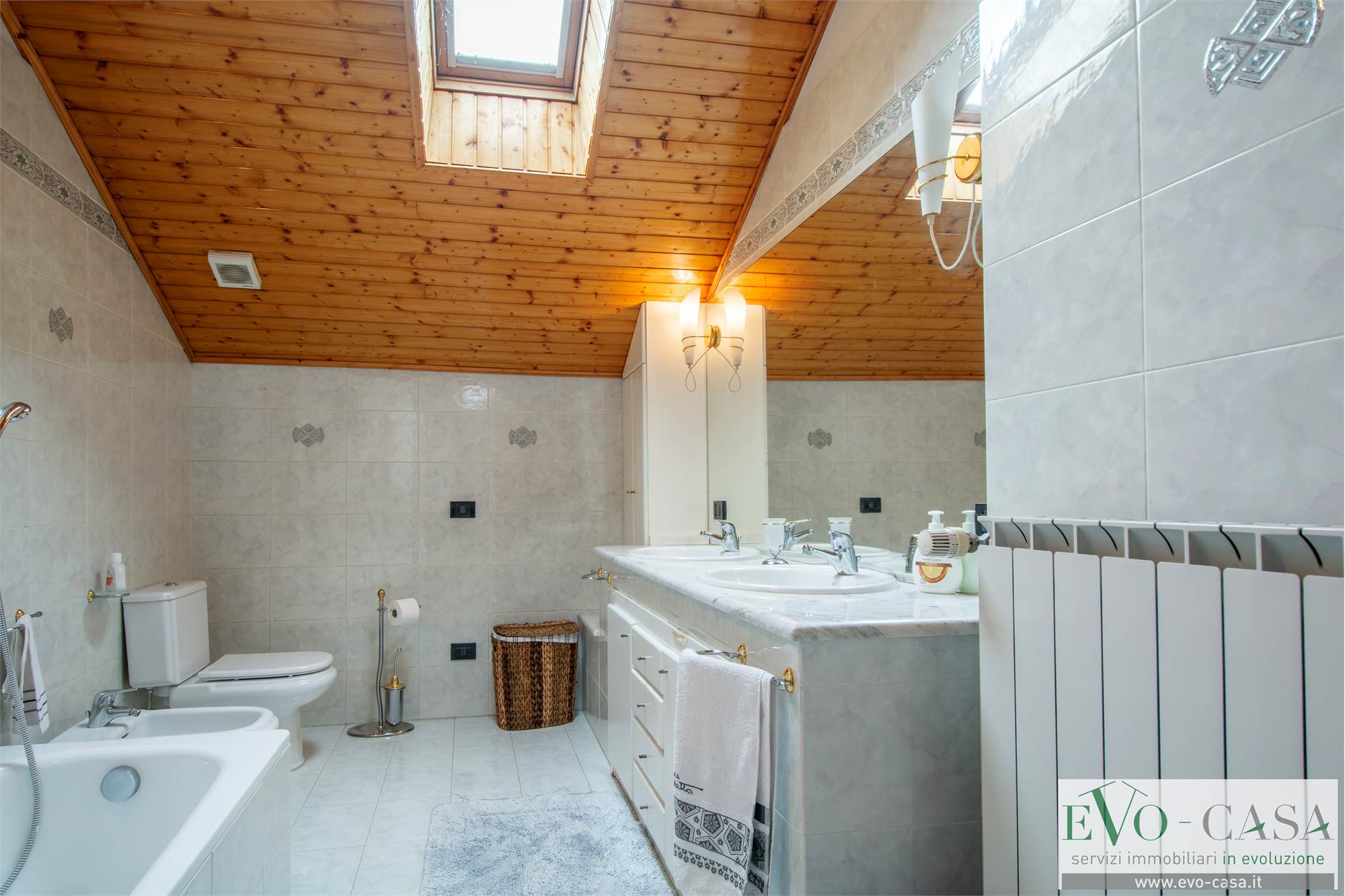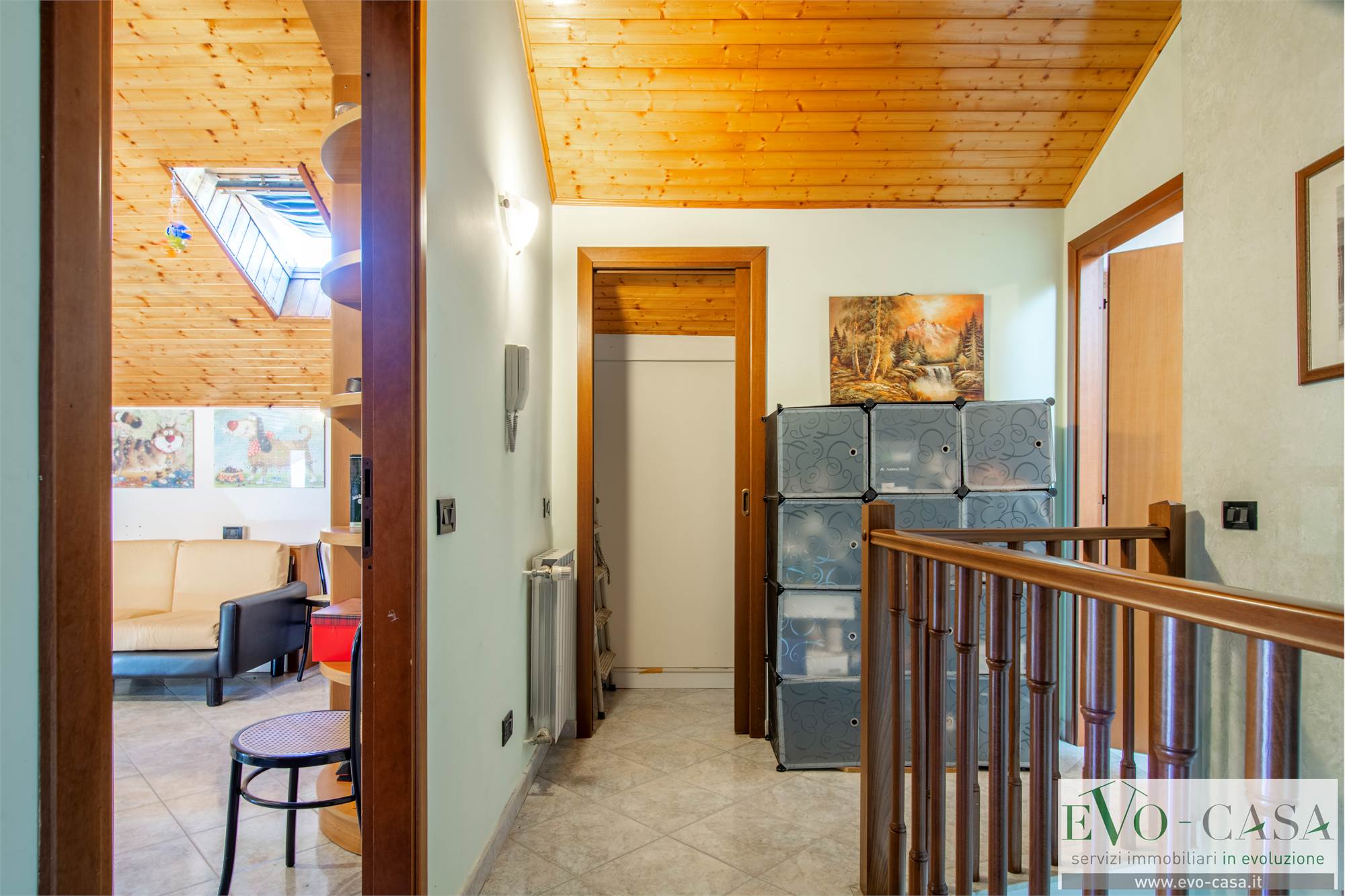 Dal soggiorno, grazie alla scala a vista in legno si può raggiungere la mansarda completamente rifinita, formata da 2 locali sgombero, comunicanti anche grazie al balcone, 1 ripostiglio che può essere utilizzato come cabina armadio, 1 grande bagno con doppio lavabo, box doccia in muratura e vasca.