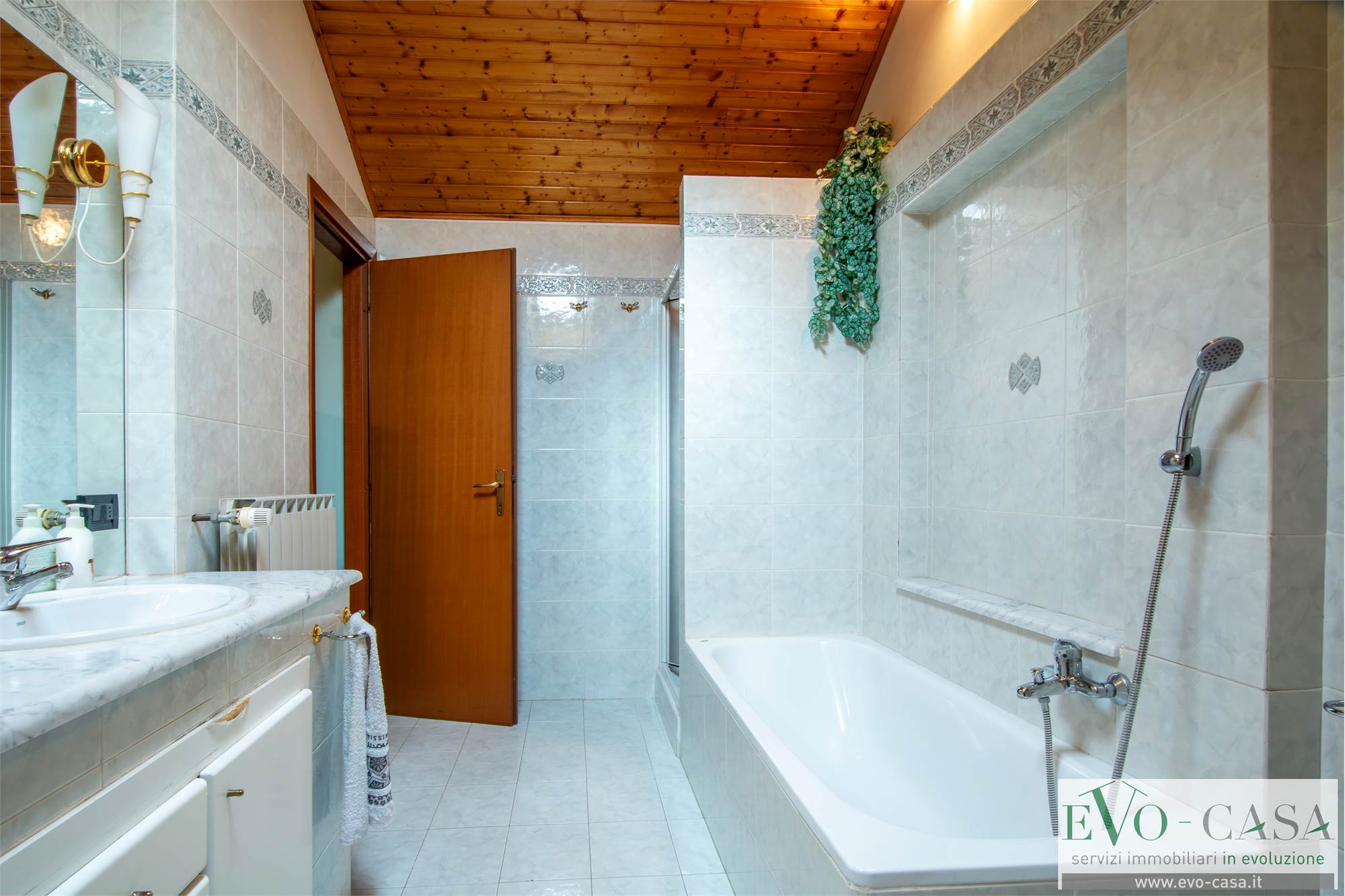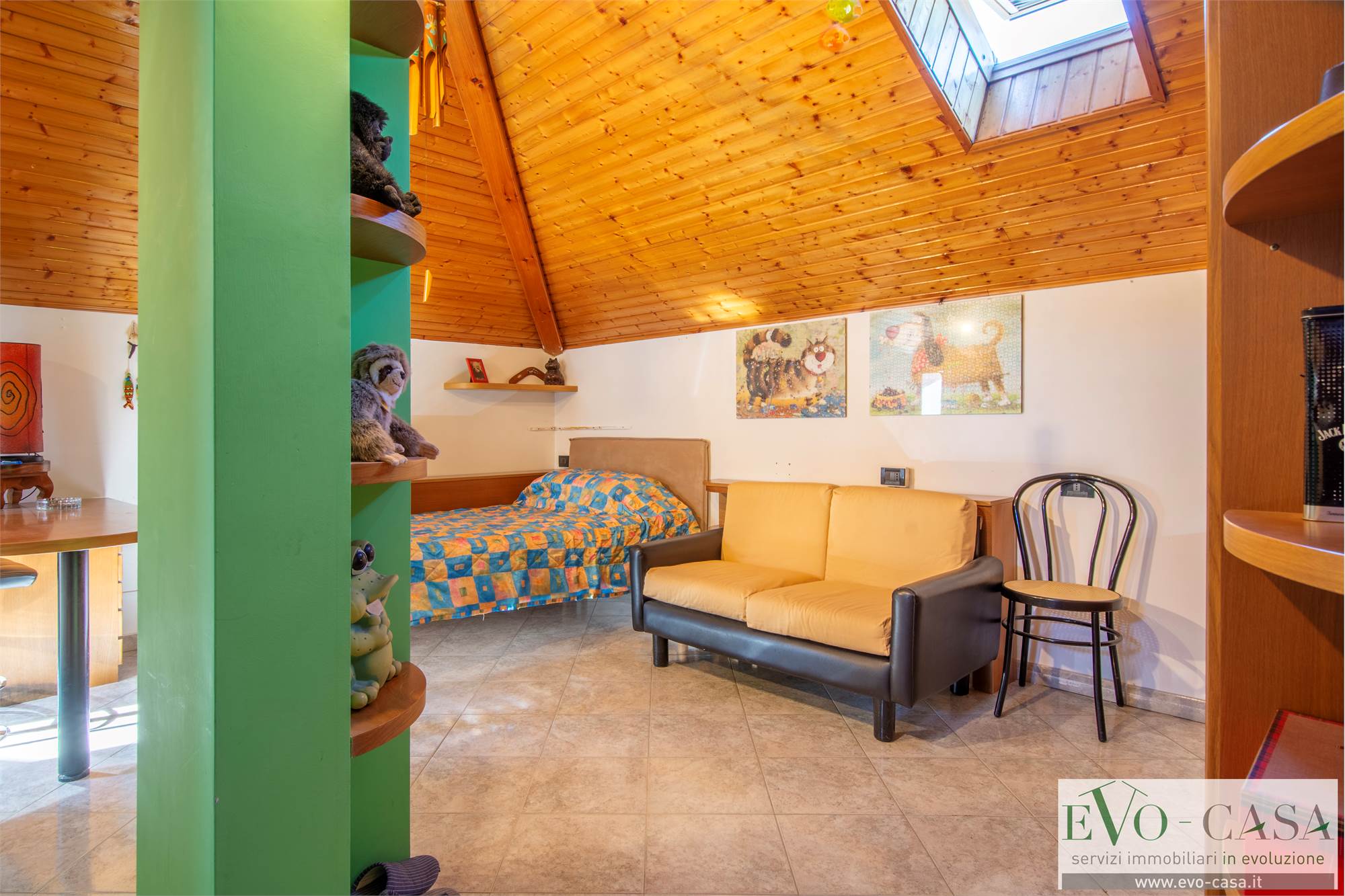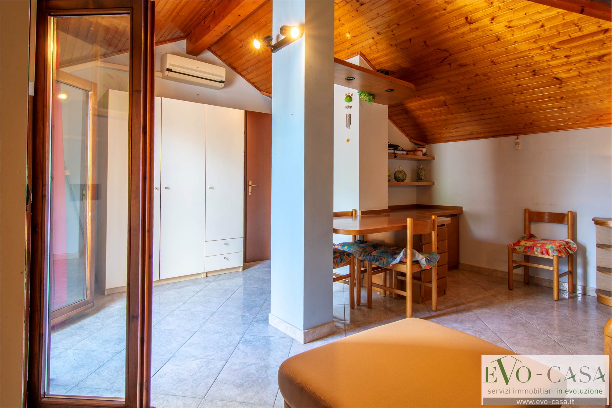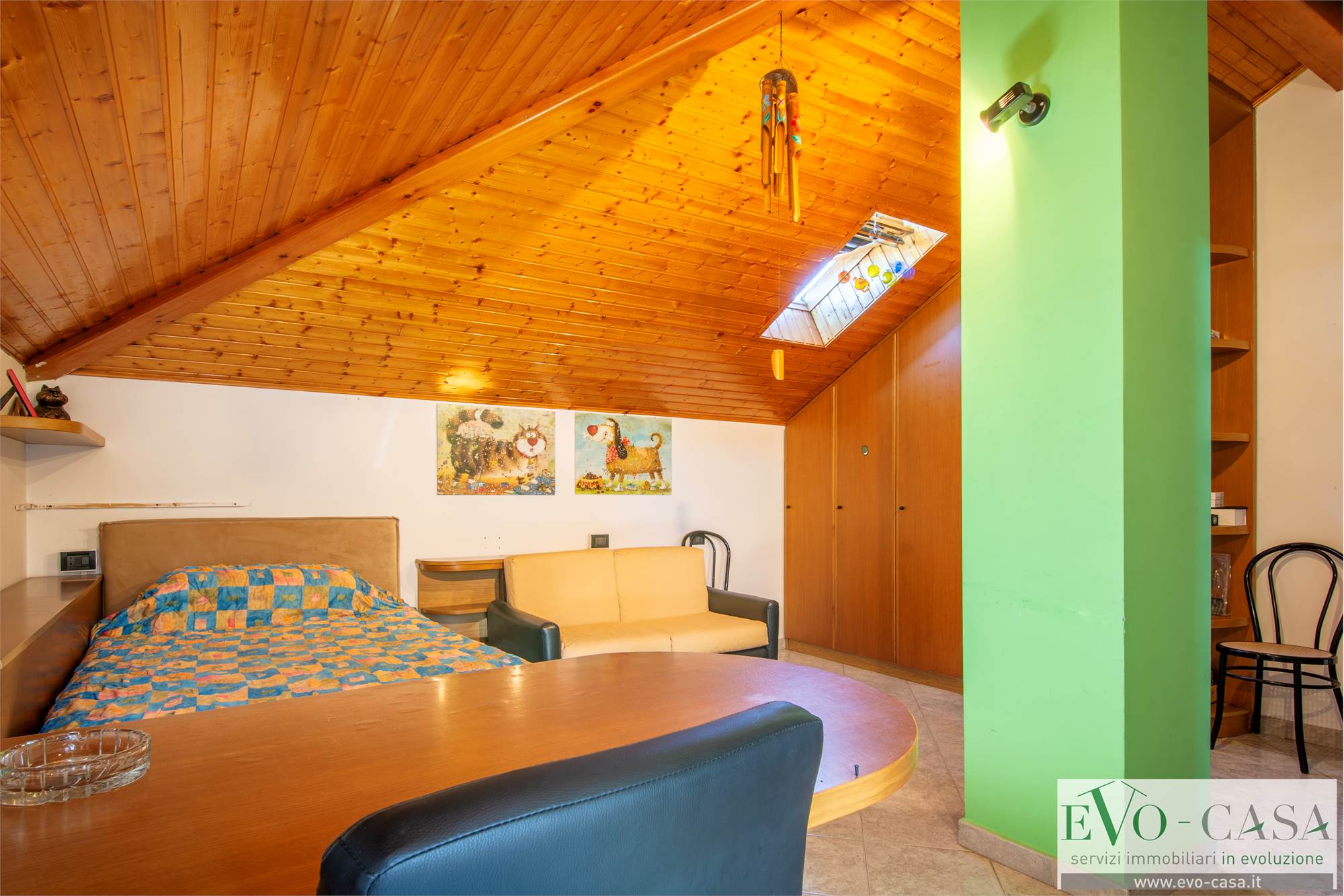 Dal soggiorno, grazie alla scala a vista in legno si può raggiungere la mansarda completamente rifinita, formata da 2 locali sgombero, comunicanti anche grazie al balcone, 1 ripostiglio che può essere utilizzato come cabina armadio, 1 grande bagno con doppio lavabo, box doccia in muratura e vasca.
