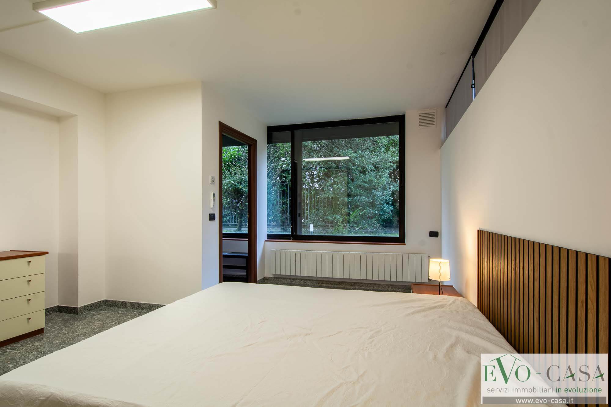 La caratteristica dell'appartamento sono le enormi vetrate che danno sul giardino del condominio. La pavimentazione è in marmo, il riscaldamento è autonomo e c'è anche il climatizzatore.