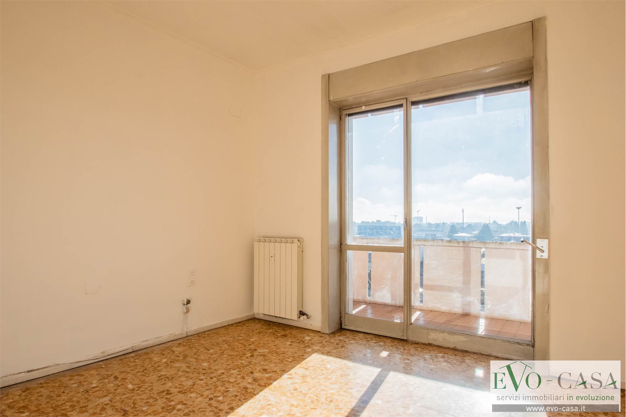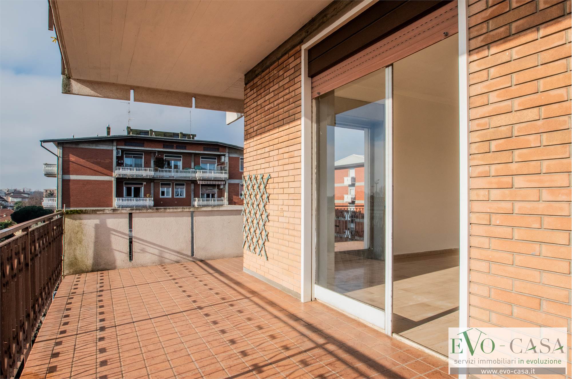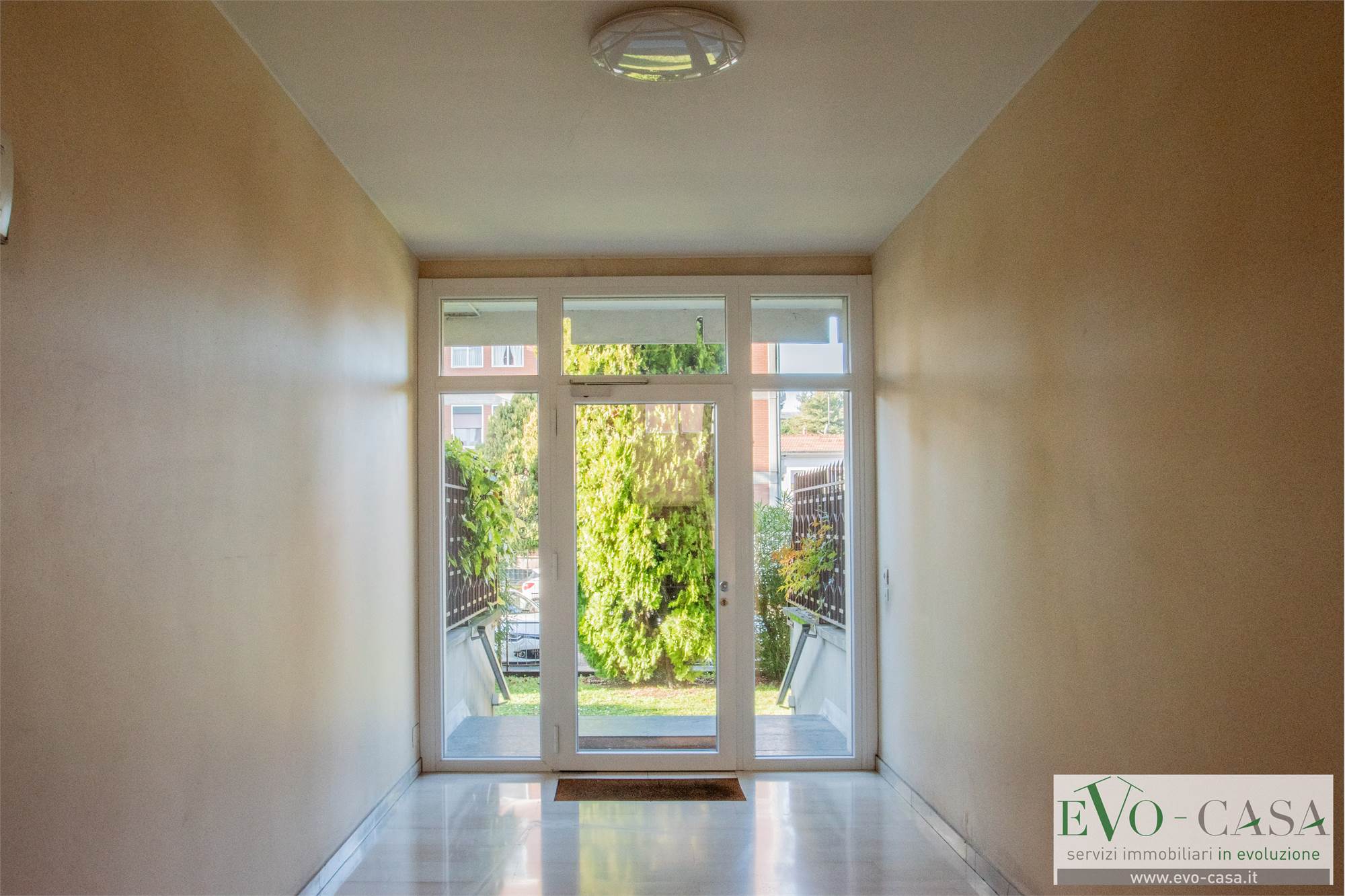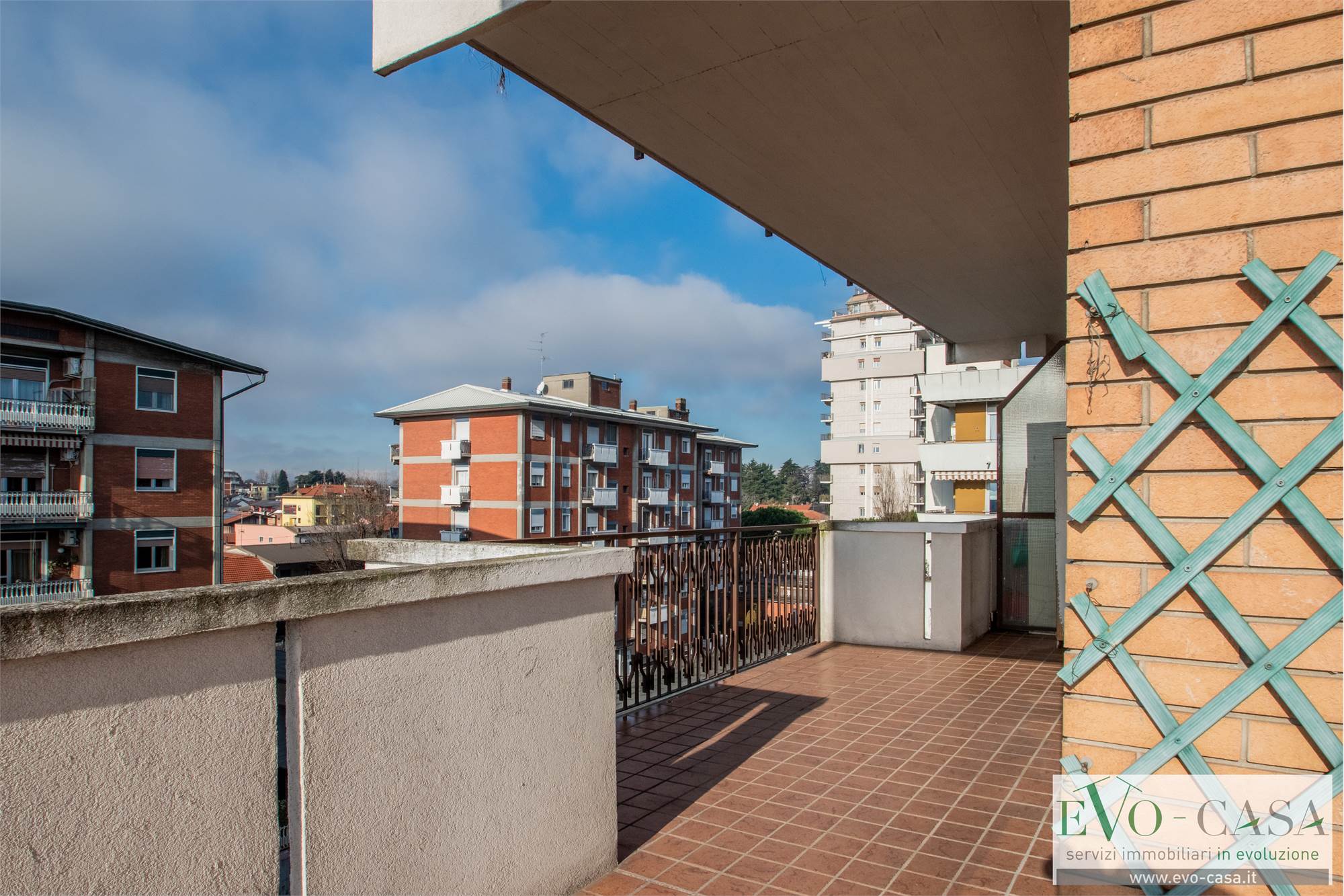 L’ingresso dell'abitazione si apre su un ampio disimpegno che organizza con razionalità i diversi ambienti della casa. Il vero valore aggiunto dell’abitazione è senza dubbio il grande terrazzo perimetrale che abbraccia oltre la metà dell’appartamento, regalando una vista aperta e una luminosità straordinaria a ogni stanza.