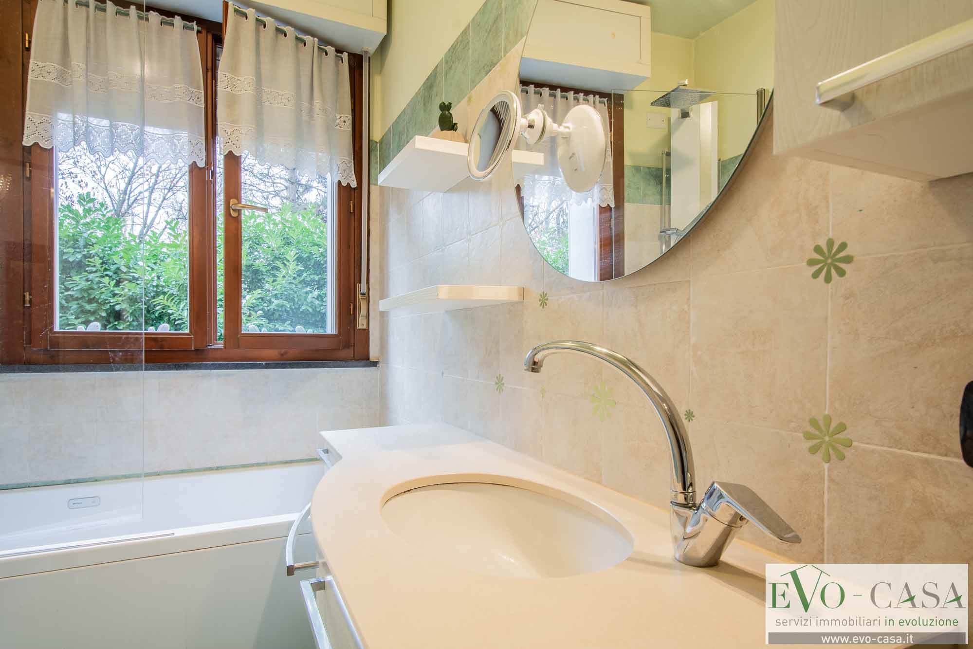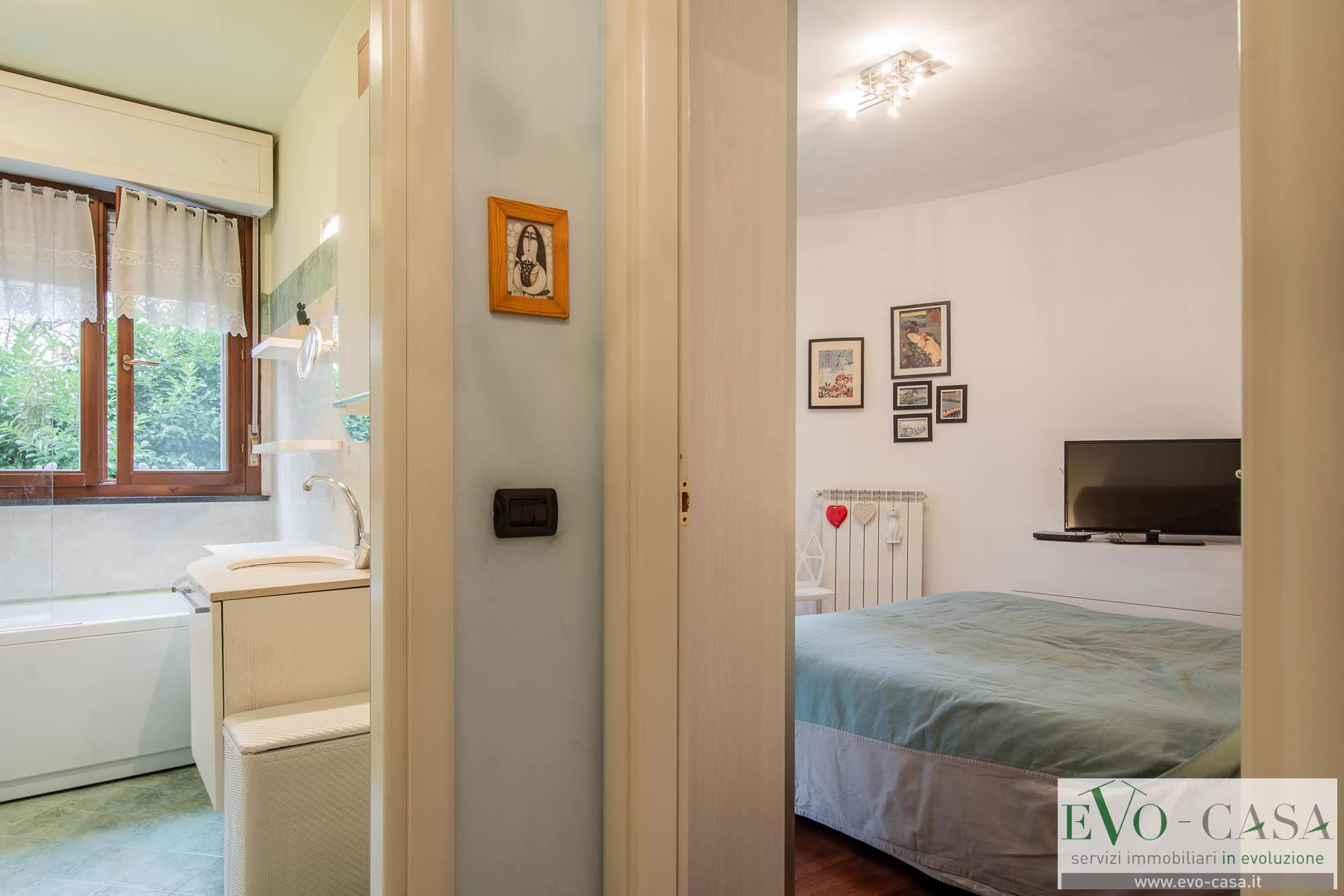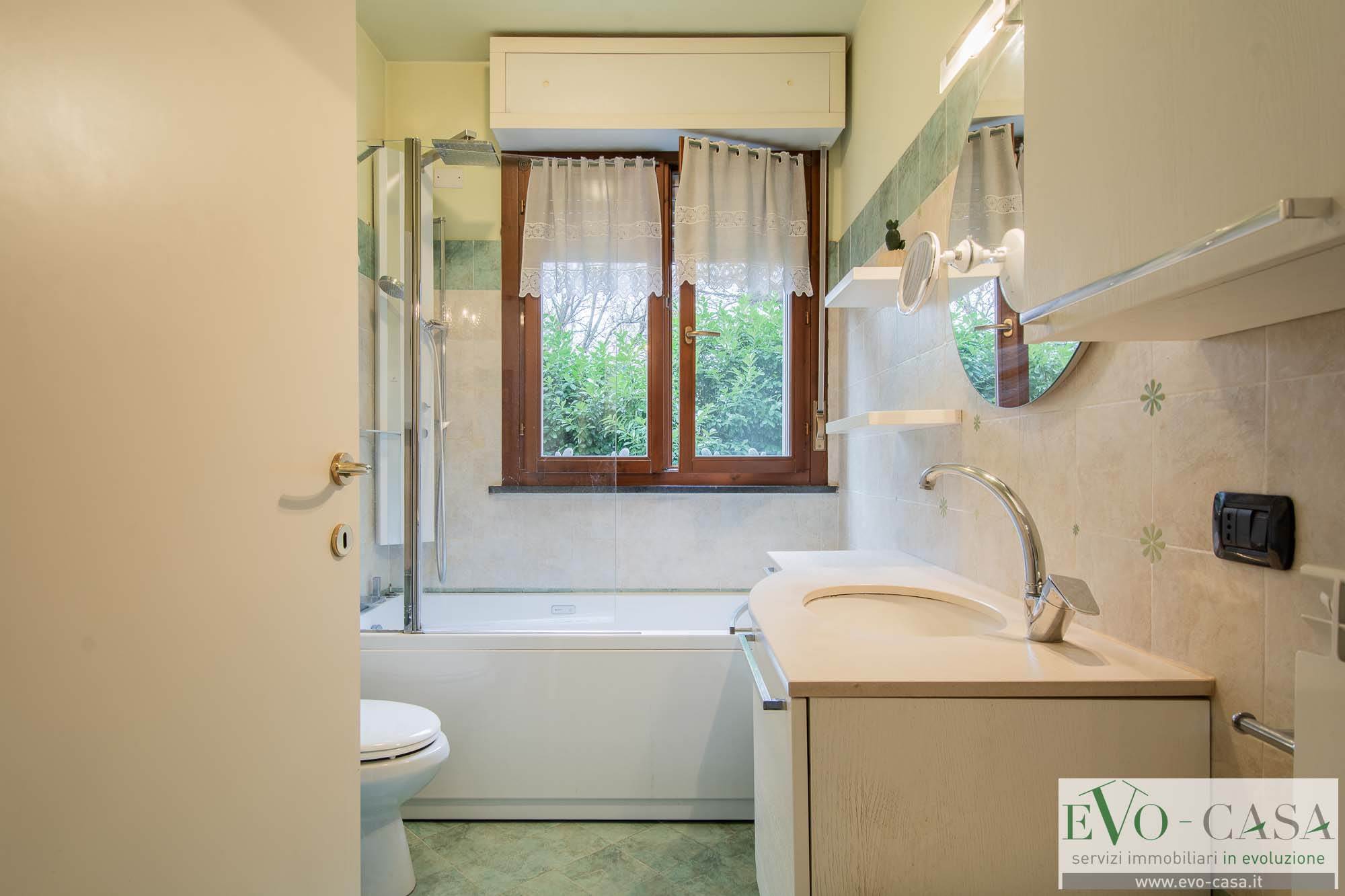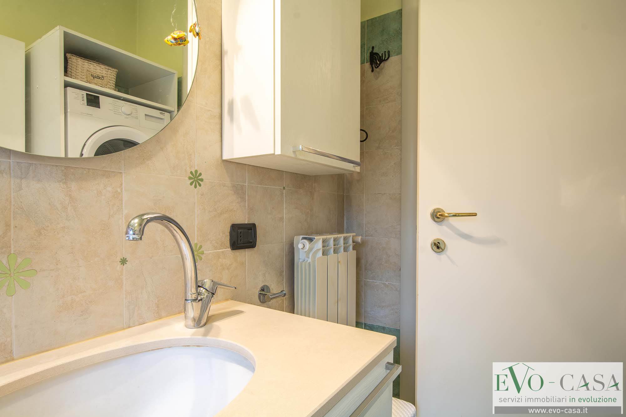 Un pratico disimpegno conduce alla zona notte e ai servizi. Il bagno, finestrato è rifinito con una comoda vasca e offre lo spazio necessario per organizzare una colonna lavanderia funzionale.