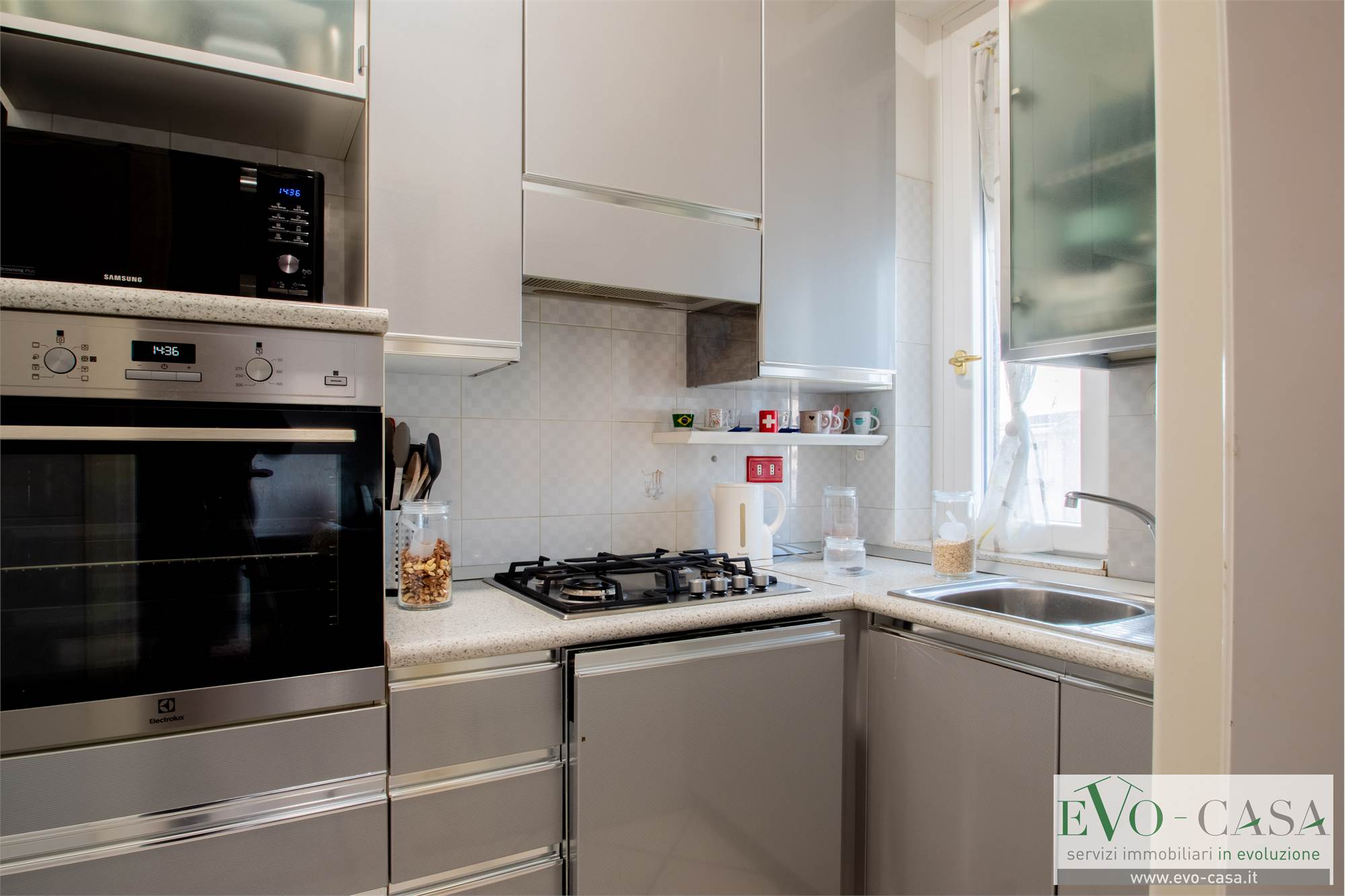 La cucina, seppur di metratura contenuta, risulta funzionale e luminosa: la finestra posizionata sopra il lavello garantisce infatti un affaccio arioso, mantenendo l'ambiente separato e ben organizzato.