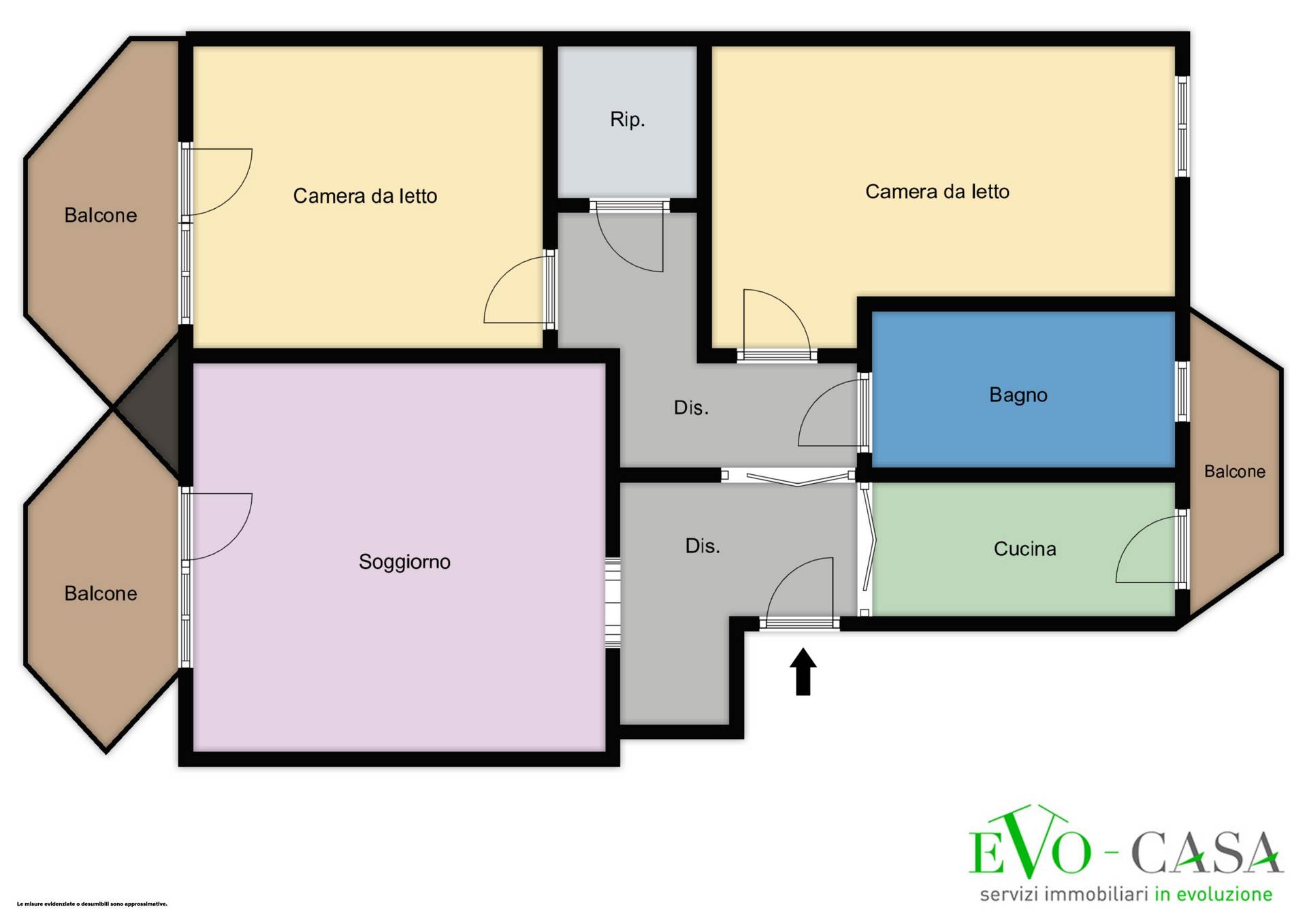 Varcata la soglia, veniamo accolti da un funzionale disimpegno d'ingresso che organizza sapientemente gli spazi della zona giorno. Qui troviamo il cucinotto, servito da un pratico balconcino di servizio, ed il soggiorno, reso particolarmente luminoso da un ulteriore balcone.